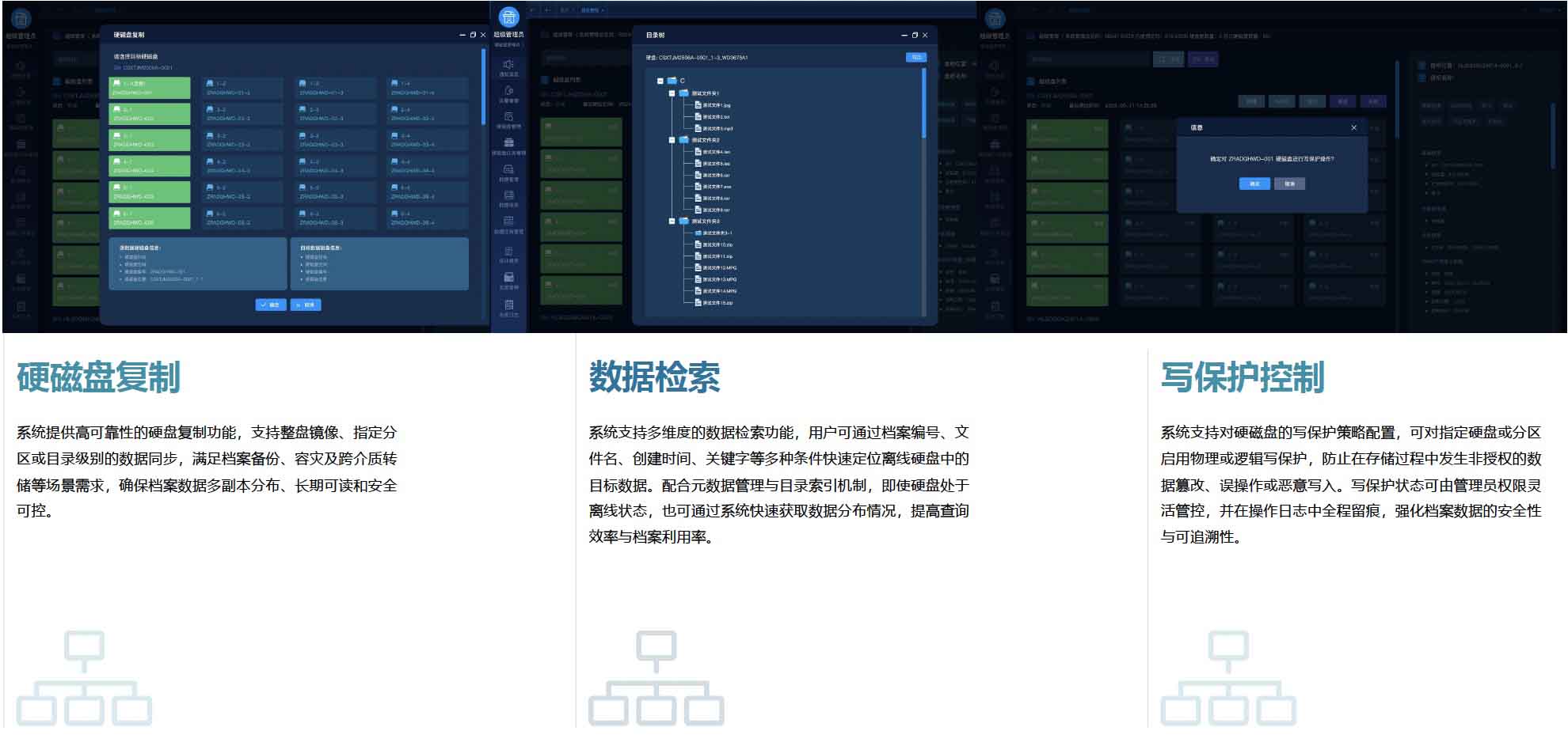 數(shù)據(jù)硬磁盤智能離線存管系統(tǒng)是一款面向高安全需求的數(shù)據(jù)存儲解決方案,集智能存儲、安全防護(hù)和全流程管控于一體。系統(tǒng)通過智能存管柜與管理平臺,實(shí)現(xiàn)硬盤的入庫、檢測、備份、出庫全生命周期管理,支持上電檢測、健康監(jiān)測、自動(dòng)備份和異常告警,確保存儲數(shù)據(jù)長期安全可用,廣泛適用于政府與企事業(yè)單位的重要數(shù)據(jù)存管需求。